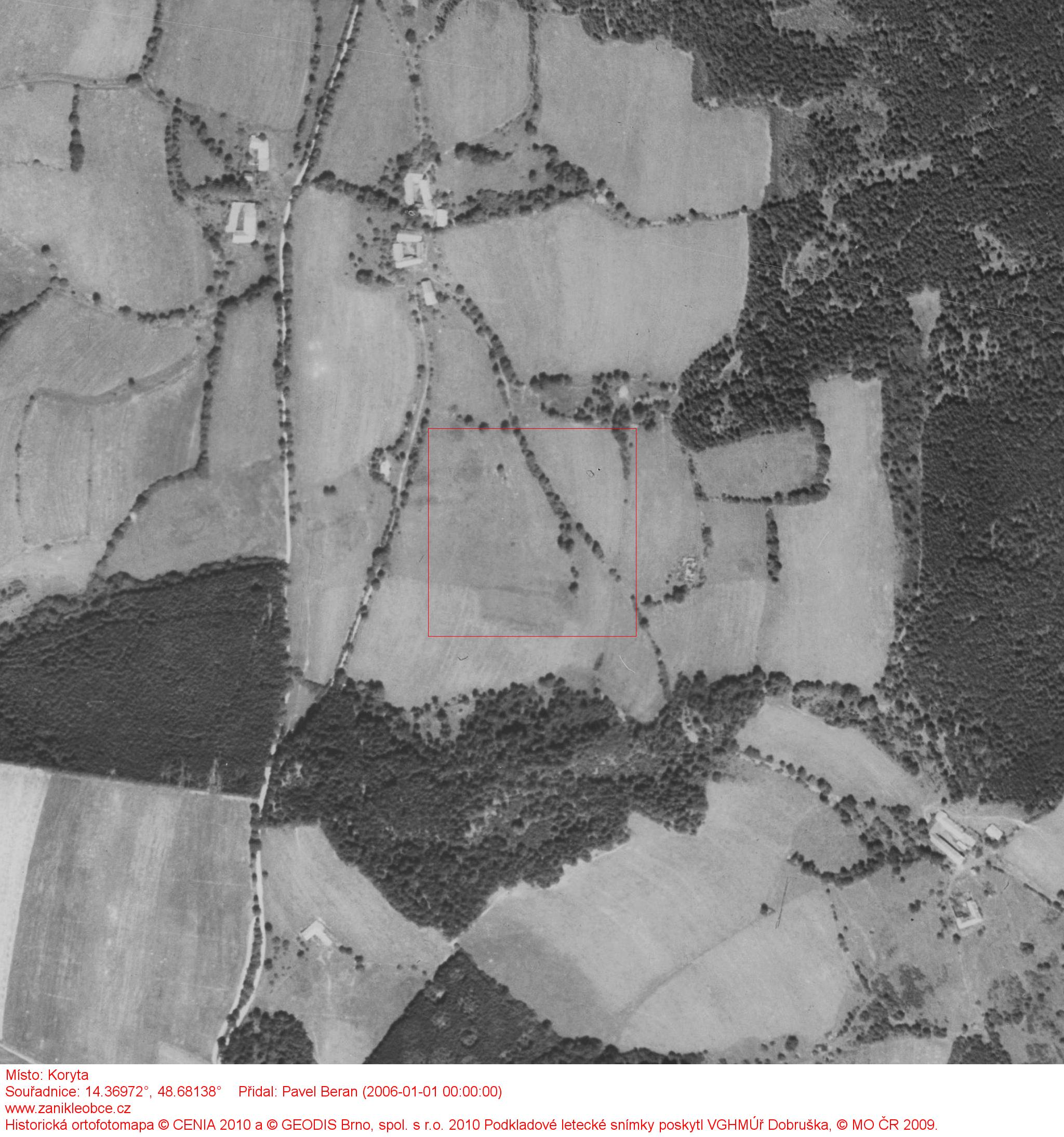 Koryta dnes[Honza Reiter 21.8.2012 11:32] | Reagovat V místě kaplička. Torza několika stavení jsou za drátěným oplocením obory.